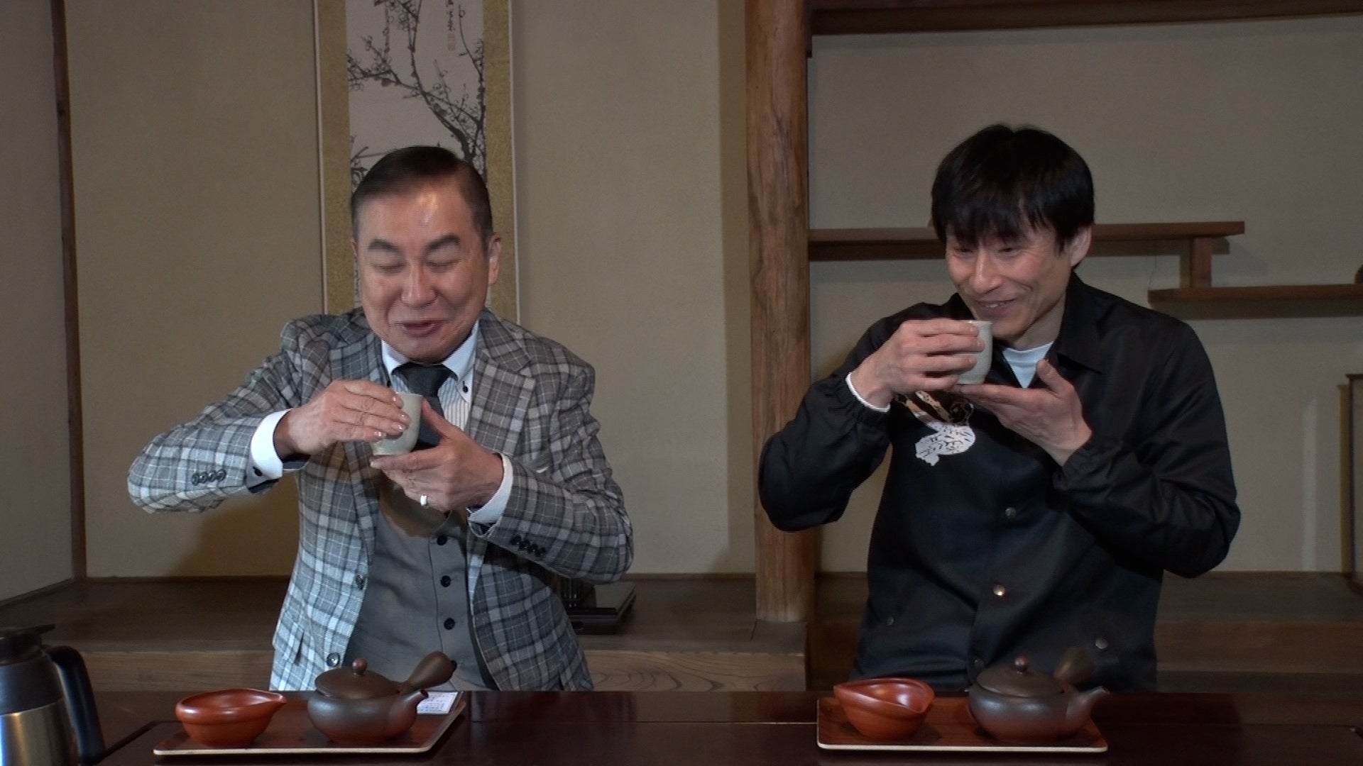 さっそく店主にその足柄茶を入れていただいた2人。足柄茶は一煎目、二煎目、三煎目とそれぞれ全く異なる味わいをみせますが、文枝はその美味しさに感動した様子。自然と笑顔がこぼれ、「こんなん今まで初めてですよ。一杯ずつ味が変わっていくのは」と絶賛します。なだぎも「1つのお茶で、こんなに楽しめる?」と不思議がり、足柄茶の味わいの変化に2人ですっかり魅了されていました。