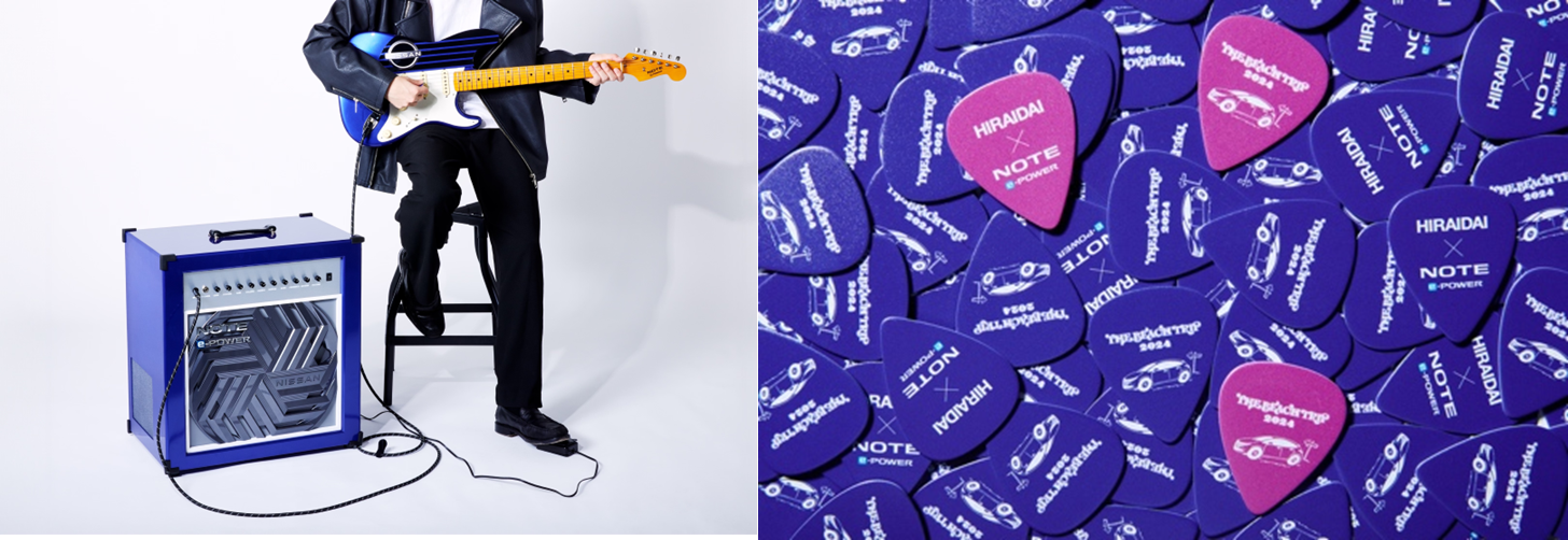 「e-POWER GUITAR」は、沖縄・千葉の両会場に設置されるノート e-POWER特設ブースで、直接手に取って体験いただくことが出来ます。また、展示車両と「e-POWER GUITER」の写真をSNSに投稿することで、数量限定のオリジナルピックが貰えるキャンペーンも実施予定です。