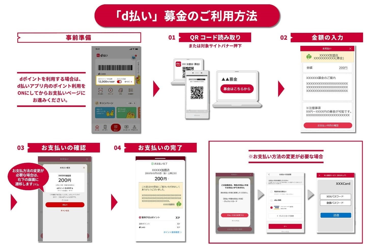 簡単に募金を実施いただけます。dポイントを利用して募金いただくことも可能です。