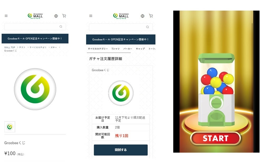 何が当たるかわからないガチャの楽しさをそのままオンラインで体験いただけるオンラインガチャ・くじにて販売します。ガチャで購入した商品はその場で確認でき、サイト上で販売されている通常商品と合わせての発送も可能となっています。