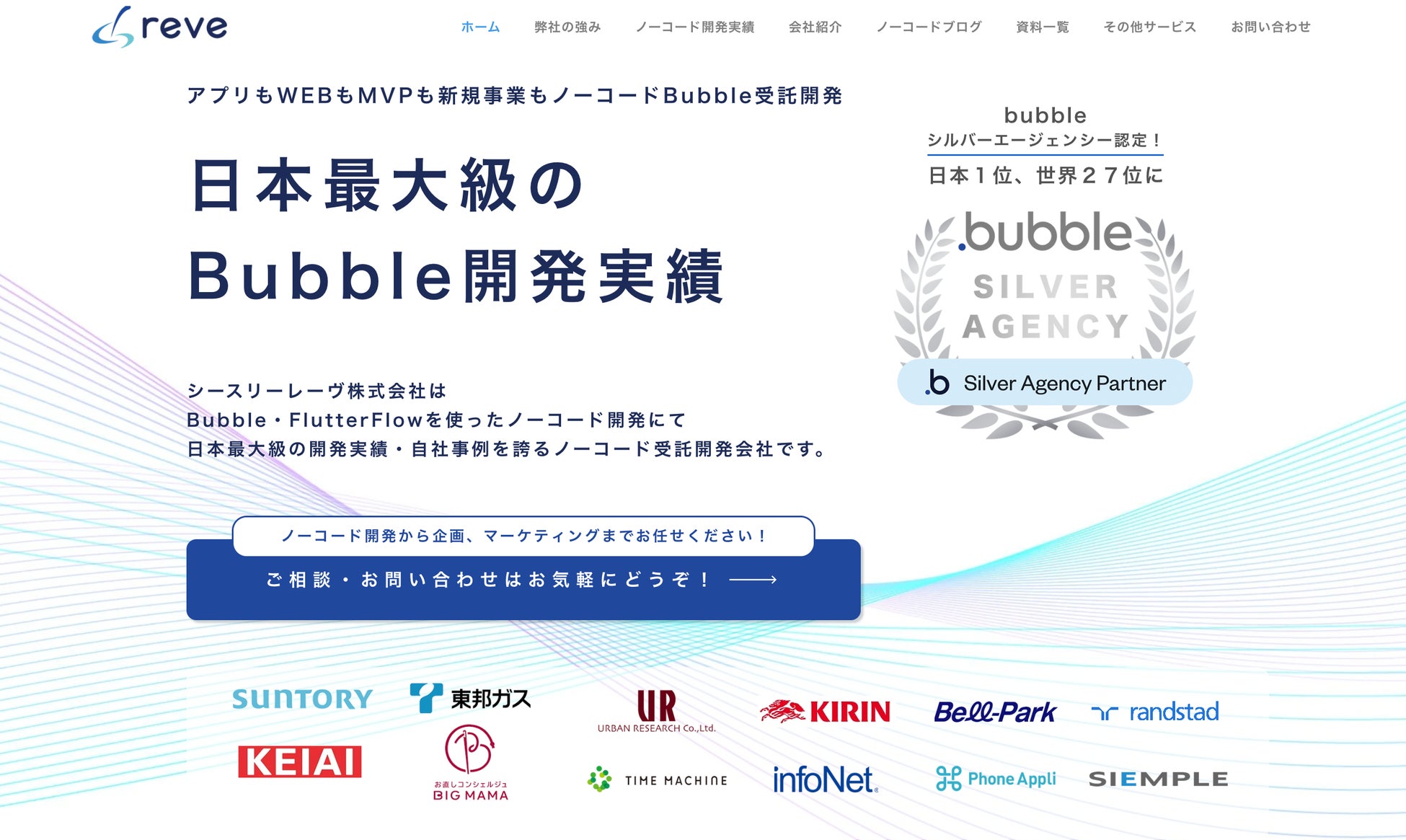 シースリーレーヴ株式会社は、Bubble・FlutterFlowなどのノーコード開発を行う、日本最大級のノーコード受託開発会社です。