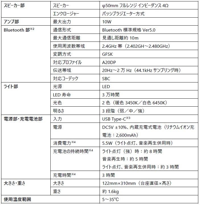 ※1.白色/暖色ともに強設定、電源接続時