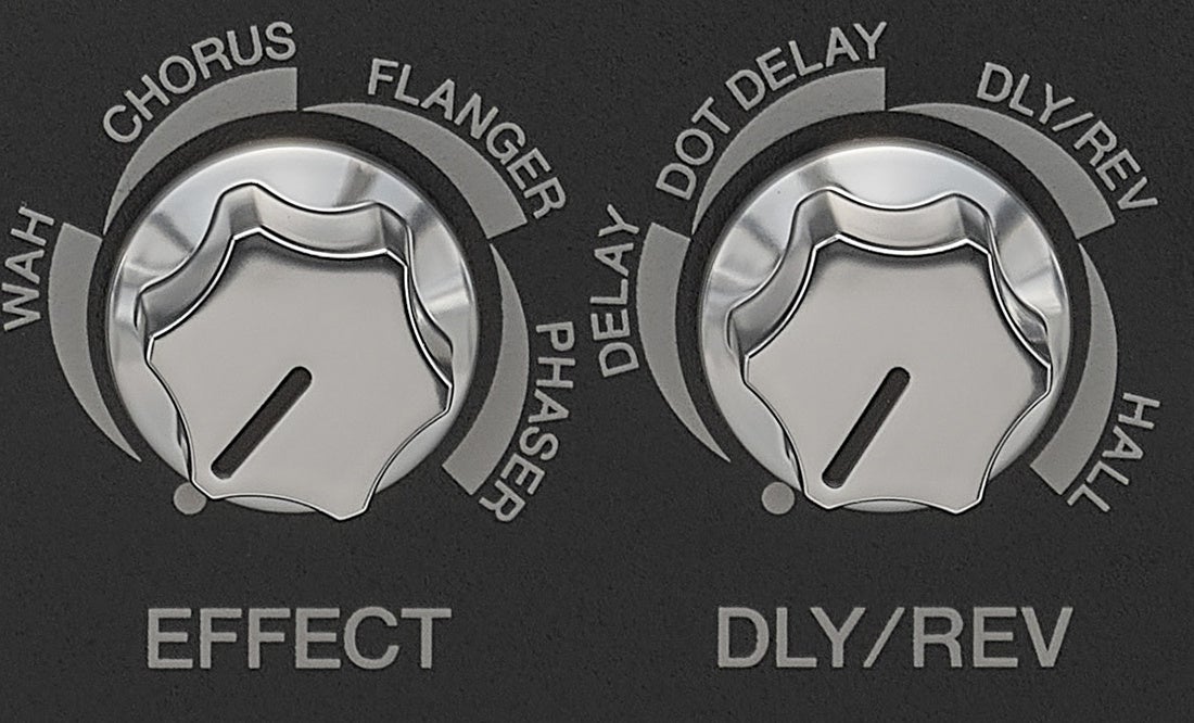 エフェクトには新たにワウを搭載したほか、本体のノブで操作できるエフェクトとしてコーラス、フランジャー、フェイザーを、ディレイとリバーブの操作ノブにはドットディレイ、ディレイ/リバーブ、ホールリバーブを用意しました。さらに専用アプリには、本製品だけで使用できるデチューン、ハーモニーやルームリバーブ、スプリングリバーブといったエフェクトを用意。特別なエフェクトが演奏の楽しさを広げます。
