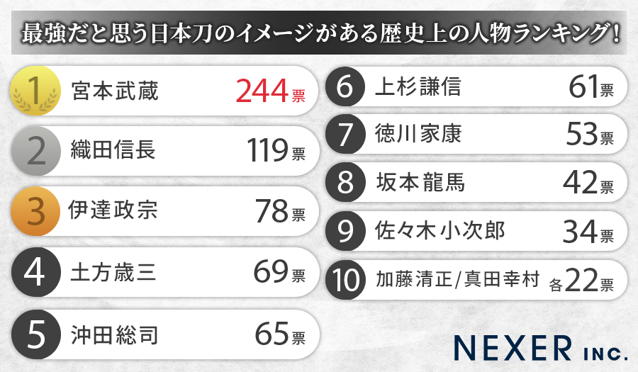 株式会社NEXER・最強だと思う日本刀のイメージがある歴史上の人物に関する調査