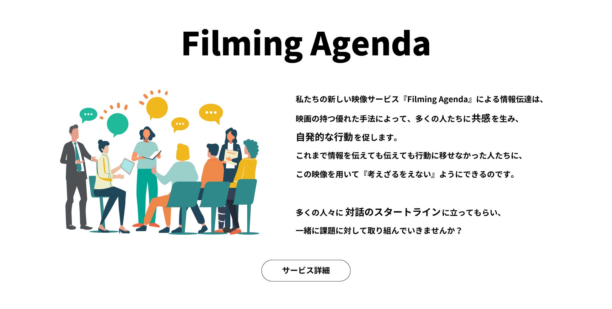 そこで、イグジットフィルムはこの課題を解決すべく、多角的な視点からの情報とその奥にある深い感情を短時間で効率的に伝える映像サービス『Filming Agenda』を開発しました。『Filming Agenda』は、映像を通じて本当に話し合うべき「問い(アジェンダ)」を浮かび上がらせることで、人々を対話のスタートラインへと導きます。