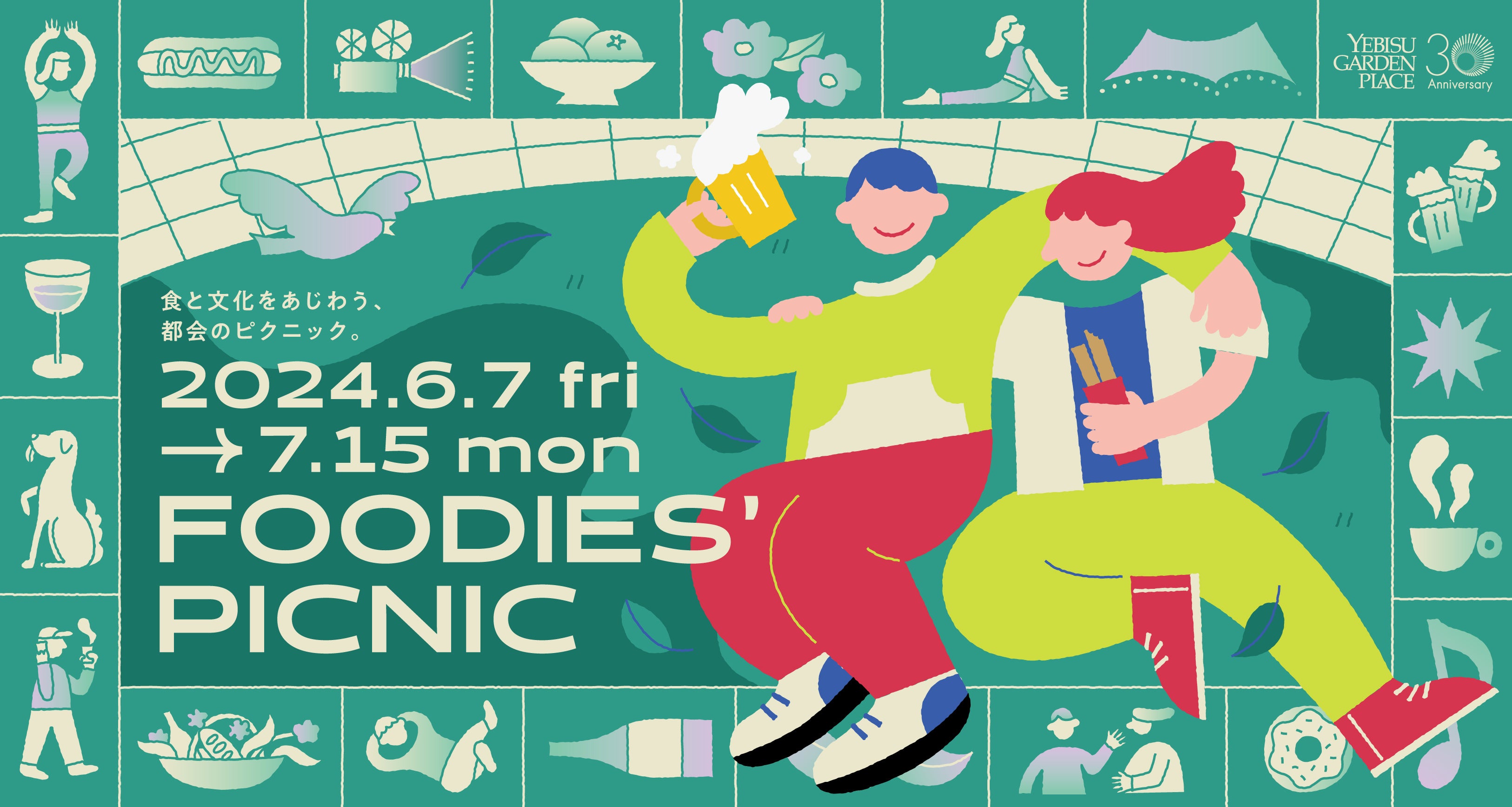 イベント期間中、6月14日(金)より時計広場に特設のフードテラスを設け、恵比寿ガーデンプレイス内のレストランが週替わりで出店。ピクニック気分で人気店の味を気軽に楽しんでいただけます。
