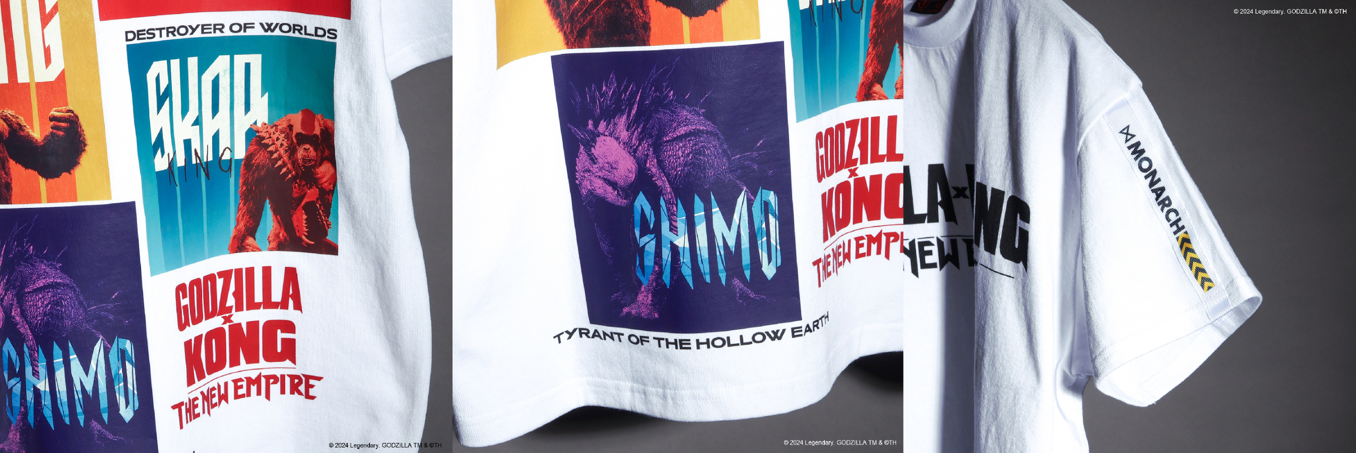 フロントには映画のタイトルロゴが入り、バックプリントには【ゴジラxコング 新たなる帝国】に登場する