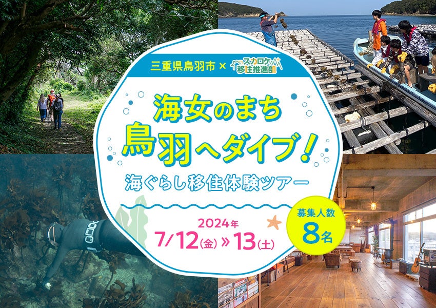 TOKYO FMで放送中の“ラジオの中の会社”がコンセプトの平日ワイド番組『Skyrocket Company』(毎週月~木曜 17:00~20:00)で毎週木曜日に放送中のスカロケ移住推進部では、UIJターンを考える人たちの応援のため、各地域の特色や魅力をご紹介しています。今回、2024年7月12日(金)~13日(土)に、三重県鳥羽市の海のまちで暮らす魅力をリアルに体験するツアーを開催します。三重県鳥羽市への移住を検討している方、海の近くでの暮らしに興味がある方を対象に、街を歩き、海の幸、漁師体験、移住者との交流など、たっぷりと鳥羽市の暮らしを体験していただくツアーとなります。