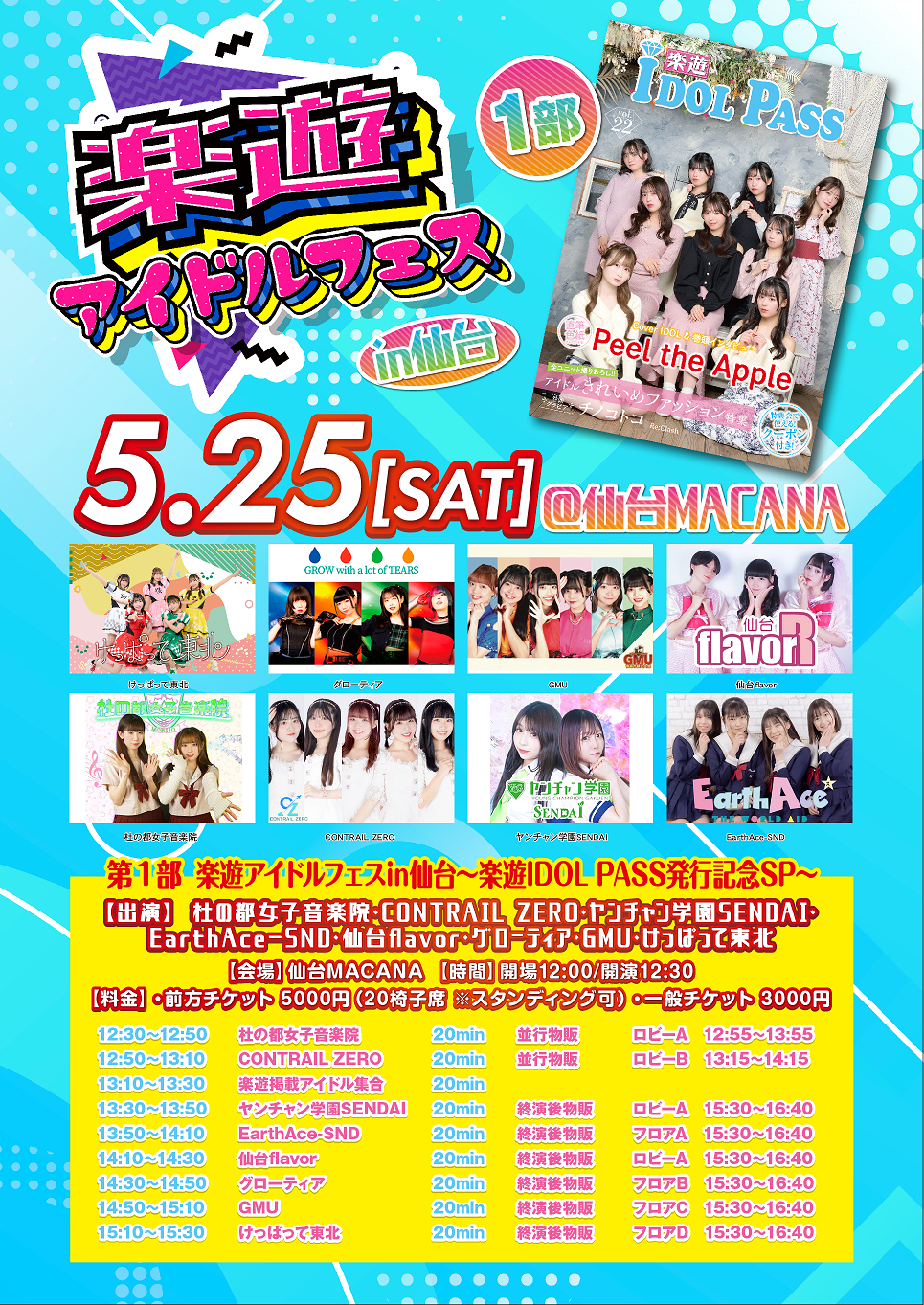 5/25(土)には仙台で楽遊アイドルフェスが開催される。