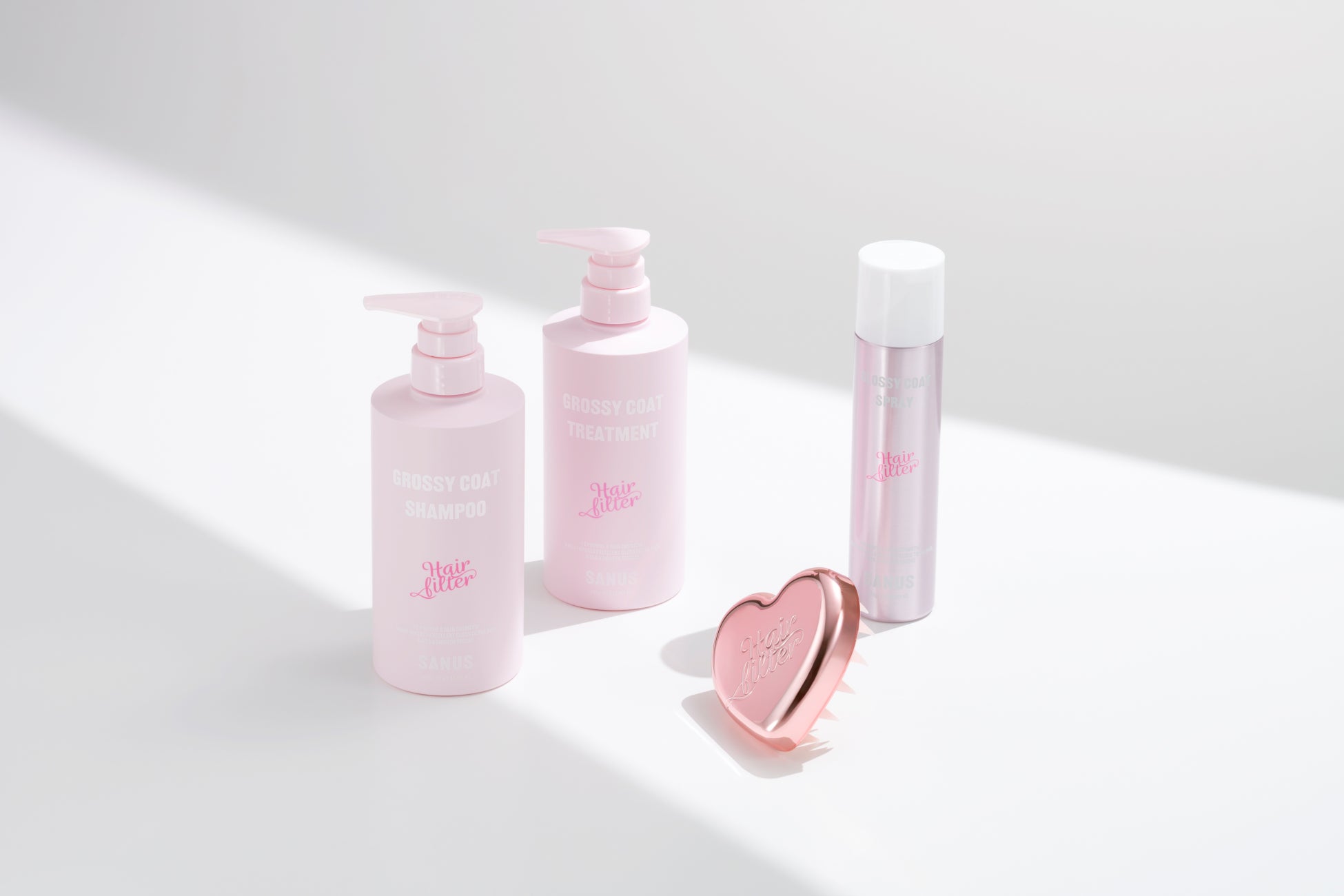 商品名:Hair filter グロッシーコートシャンプー・トリートメント・スプレー、スカルプケアブラシ