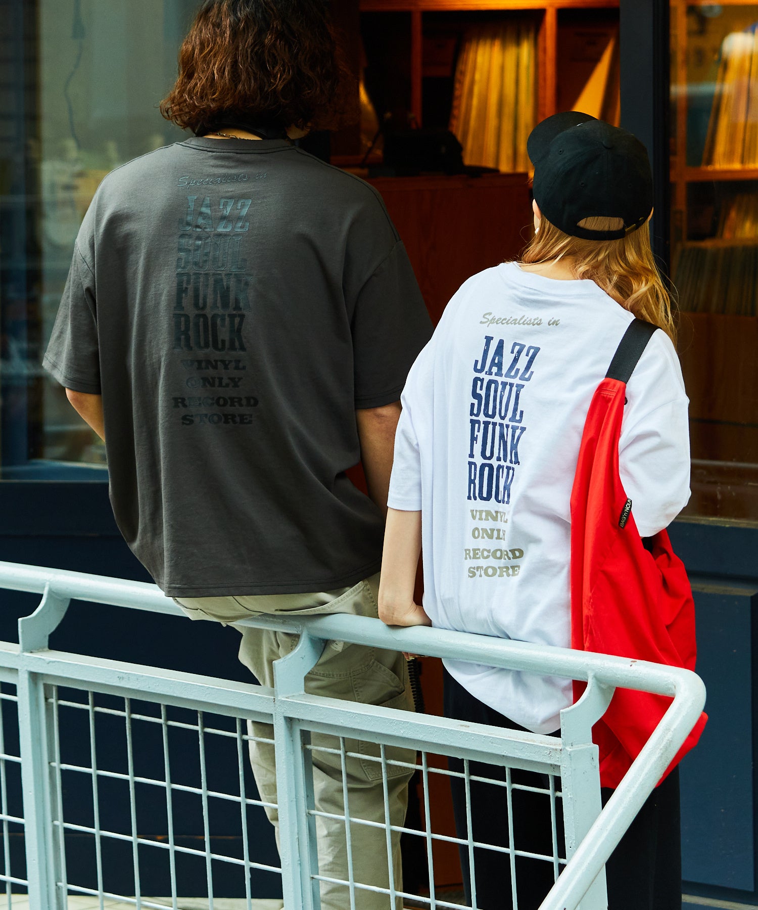 昨年秋に発売した、Face Records × FREAK’S STORE『ビッグシルエット バックプリント クルーネックスウェット』※ で好評をいただいた、「JAZZ SOUL FUNK ROCK」のグラフィックをバックプリントしたデザインを半袖Tシャツで販売いたします。このグラフィックはフェイスレコード渋谷店の入り口壁面に実際に描かれているもので、店舗を象徴するビジュアルのひとつです。今回は春夏シーズンをさわやかに彩るホワイトを追加し、4色で展開いたします。