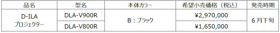 D-ILAプロジェクター「DLA-V900R」「DLA-V800R」を発売