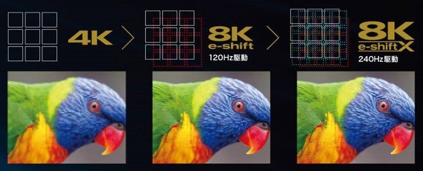3.4K/2Kコンテンツの8K解像度表示の再現能力を向上させた第二世代「8K/e-shiftX」を搭載