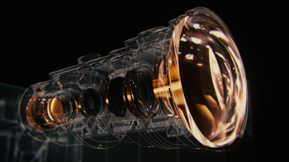 確保しながら画面の隅々まで高解像度を映しきるために、100mmの大口径で、R/G/Bの屈折率の違いを加味した5枚の特殊低分散レンズを採用することにより、シフト時の色収差・にじみなどを抑え、8K解像度を忠実に再現することが可能です。