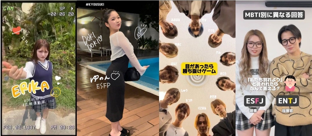 「ABEMA」の人気オリジナル恋愛番組『今日、好きになりました。』シリーズの公式TikTokアカウントでは、手書き風のデザインを活用し、10代のユーザーに親近感を持ってもらうようなクリエイティブを作成するなど、縦型動画に最適化した素材を開発しています。そのほか、ユーザーと出演者の接点を作り会話量を増やすことを目的に「MBTI」に関する質問を取り入れたり、出演者同士の関係性やキャラクターを生かしたSNSコンテンツを企画しています。