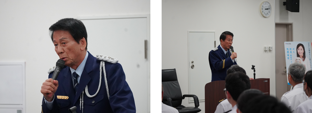 5月15日(水)に、鹿児島県鹿屋市にある海上自衛隊 鹿屋航空基地に厚生労働省 健康行政特別参与の杉良太郎氏が訪問し、肝炎をはじめとした病気の検査受検の大切さを訴えました。