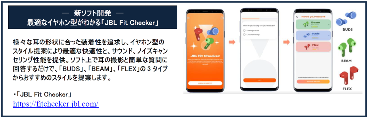自分の耳に合ったイヤホンの型を探せる専用ソフト「JBL Fit Checker」も新登場