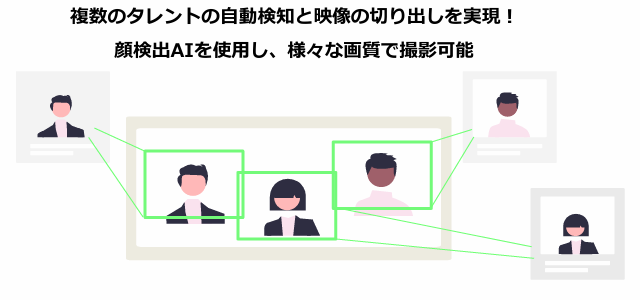④ 顔検出AIを使用し、映像に映っている複数の人物を自動抽出。