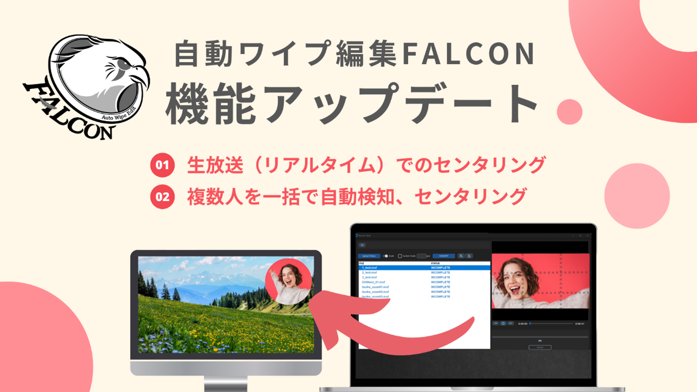 【ワイプ編集をさらに便利に!】「自動ワイプ編集FALCON」に生放送への対応とマルチショット対応の機能を実装!