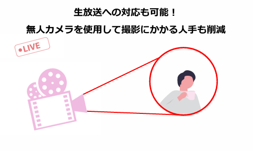 本機能を使用いただくことで、生放送時の撮影負荷の削減、ワイプ編集のさらなる工数削減、カメラなどの使用機材の削減(リアルタイムを除く)など、さらなる省力化と省人化が可能です。