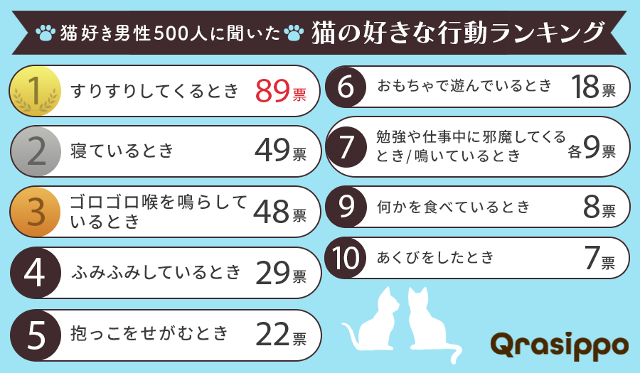 Qrasippo・猫好き男性が選ぶ猫の好きな行動に関する調査