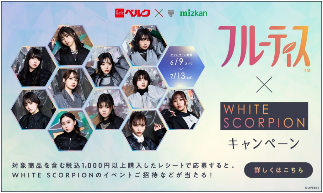 株式会社ビーマップ(本社:東京都千代田区、代表取締役社長:杉野文則、以下当社)の関連会社である株式会社MMSマーケティング(本社:東京都千代田区、代表取締役社長:杉野文則、以下MMSマーケティング)は、株式会社ベルク(本社:埼玉県鶴ヶ島市、代表取締役社長:原島一誠、以下ベルク)と株式会社Mizkan(本社:愛知県半田市、代表取締役社長 兼 CEO:吉永智征、以下ミツカン)が実施する【フルーティス™ × WHITE SCORPIONキャンペーン】に全面的に協力し、キャンペーンの企画・運営のサポートを行うことになりましたのでお知らせいたします。