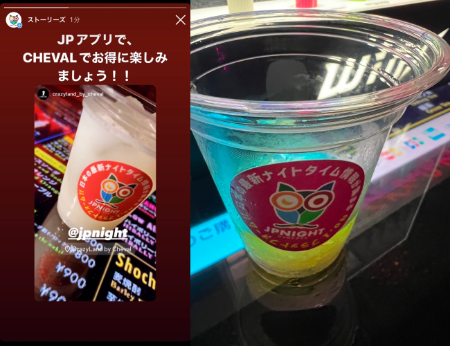 CHEVALのドリンクプラカップにJP NIGHTステッカーを貼付けてのPRを実施!!