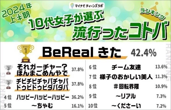 本ランキングは、2024年上半期に流行した「ヒト・コト・モノ・コトバ・ウタ」の5ジャンルについて、13〜19歳の女性682名にアンケート回答を集計したものです。