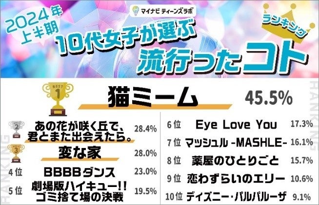 <マイナビティーンズラボ「2024年上半期10代女子が選ぶトレンドランキング」概要>