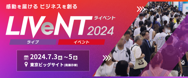 LIVeNT 2024 会期:2024年7月3日[水]-5日[金]10:00~17:00 会場:東京ビッグサイト(南展示棟)