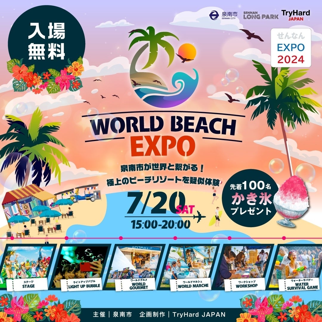 泉南市と株式会社TryHard Japan(所在地:大阪市中央区)は、2024年7月20日(土)にSENNAN LONG PARK(所在地:⼤阪府泉南市)にて開催予定の、世界のビーチを疑似体験できる「WORLD BEACH EXPO」のコンテンツ詳細を発表いたします。【入場無料】