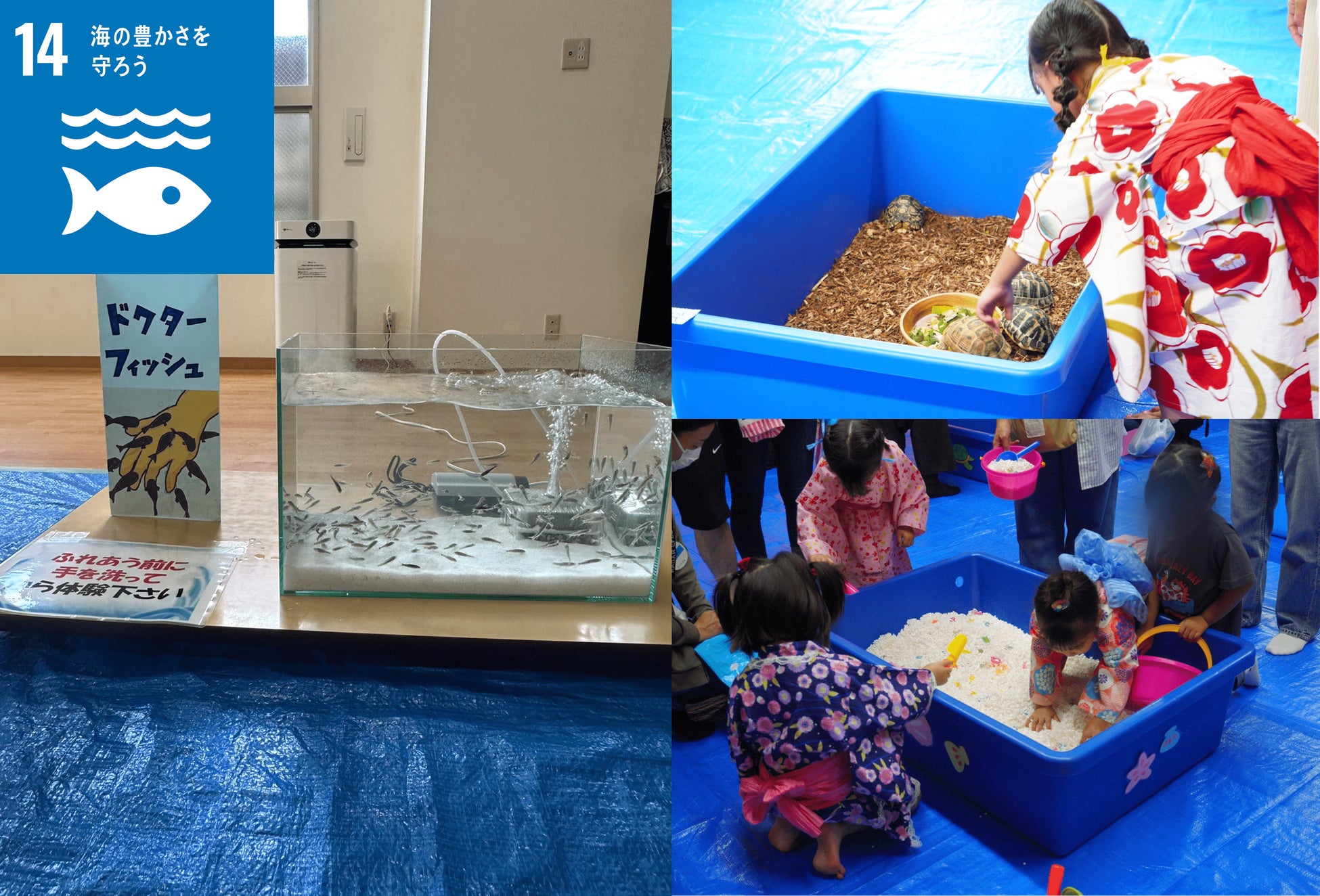 ビーチの生き物に見たり触れたりできる移動水族館が登場!海洋保護に関心を持っていただけるブースを造成いたします。