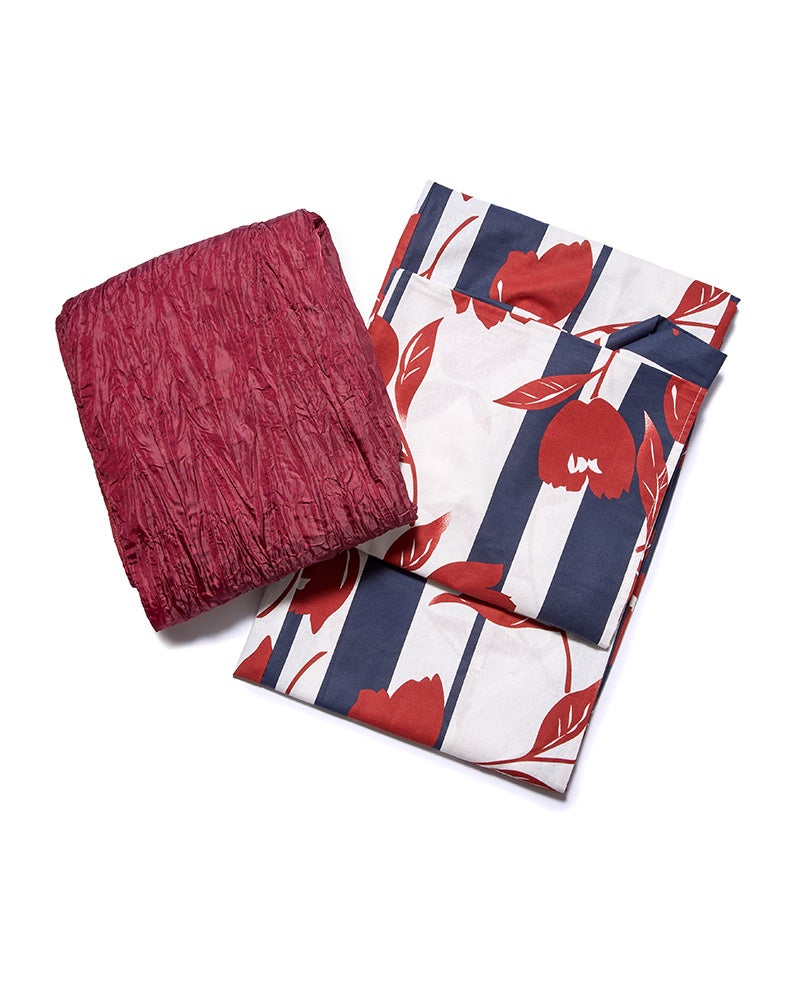 今年発売し、即完売した人気の“チューリップスクエアネックワンピース”のチューリップ柄を和柄調にアレンジ。ネイビーの縞模様とマッチし、シンプルながらも上品で奥ゆかしさがあり、目を惹く配色に。