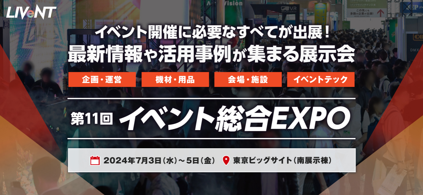 LIVeNT 2024内 第11回 イベント総合EXPO 会期:2024年7月3日[水]-5日[金]10:00~17:00 会場:東京ビッグサイト(南展示棟)