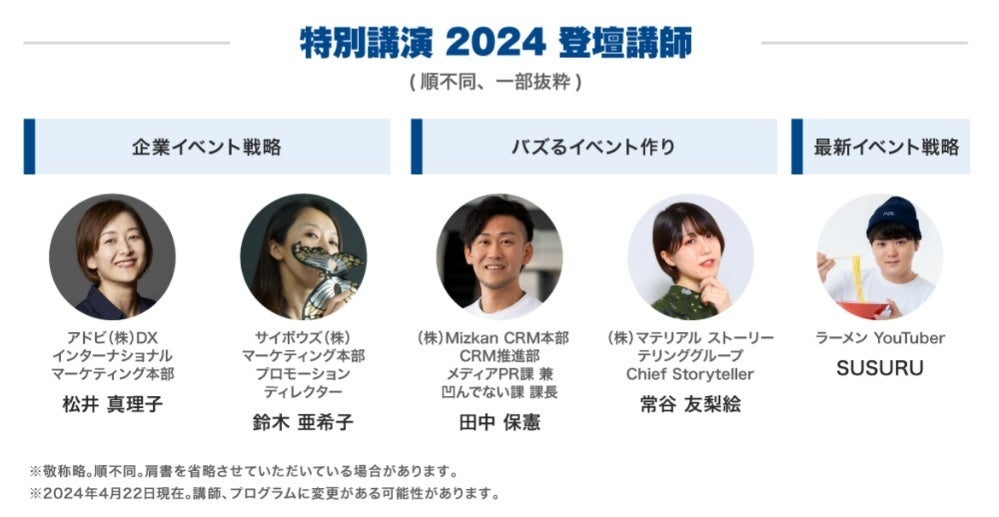 バズるイベント作り、成果につながる企業イベント戦略など、最新のイベント企画・制作・集客のヒントをテーマに、業界のトップランナーが連日登壇します。