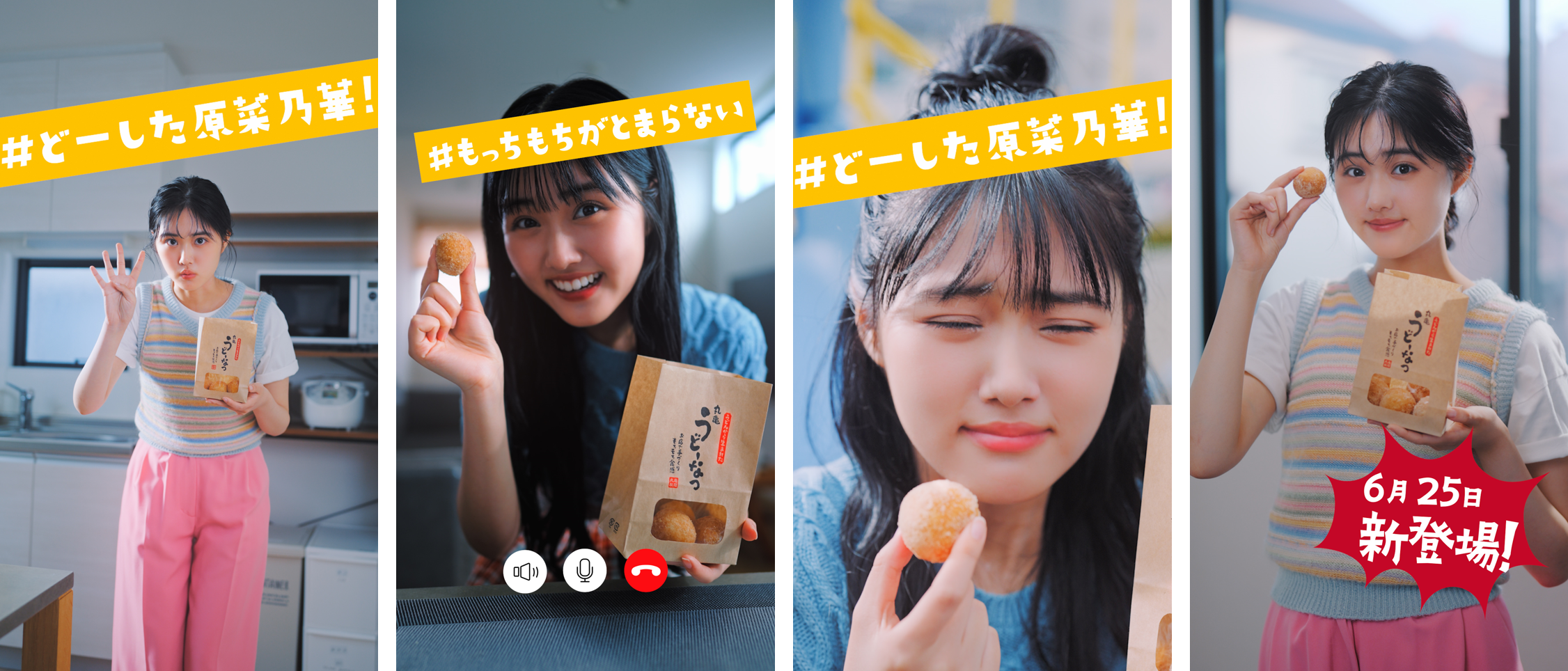 全6篇からなる今回のシリーズ。第1弾「もしももちもちがなくなったら・・・」篇は、「(「丸亀うどーなつ」の)もちもちがこの世から無くなったら・・・」と想像し思わず泣き出す原さんが、最後は泣きながら「今食べておかなきゃ!」と「丸亀うどーなつ」を食べる可愛らしい姿が印象的です。第4弾「カレー味ショックが止まらない」篇、第5弾「絶対絶命!!カレーロス!」篇では、複数のスパイスにフライドオニオン、ガーリックの旨みを加えた、スパイシーな味わいともっちもちの食感の相性がクセになる『丸亀うどーなつ やみつきカレー味』にフォーカスを当て、ドーナツではめずらしいカレー味にやみつきになってしまっている原さんの姿をお届けします。また、第6弾「もちもち一個取られて激おこぷんぷん」篇では、「丸亀うどーなつ」が誰かに食べられていることに気が付き「食べたの!?」「わたしのもちもち返してよ!」と声を上げる原さんの怒った姿にぜひご注目ください。