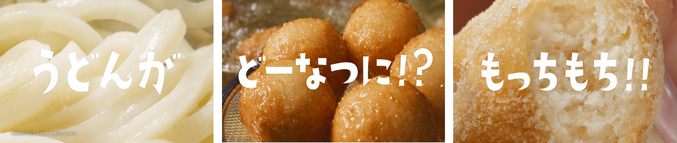 丸亀製麺の毎日粉から打つ、もちもちのうどんが「丸亀うどーなつ」の生地のベースです。もっちもちの食感を存分に楽しんでいただくため、うどんの配合量や生地を寝かせる時間も試行錯誤を繰り返し、こだわり抜きました。