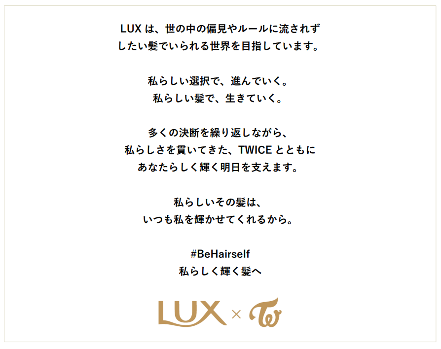 ▼「LUX×TWICE ~#BeHairself私らしく輝く髪へ~」ステートメント