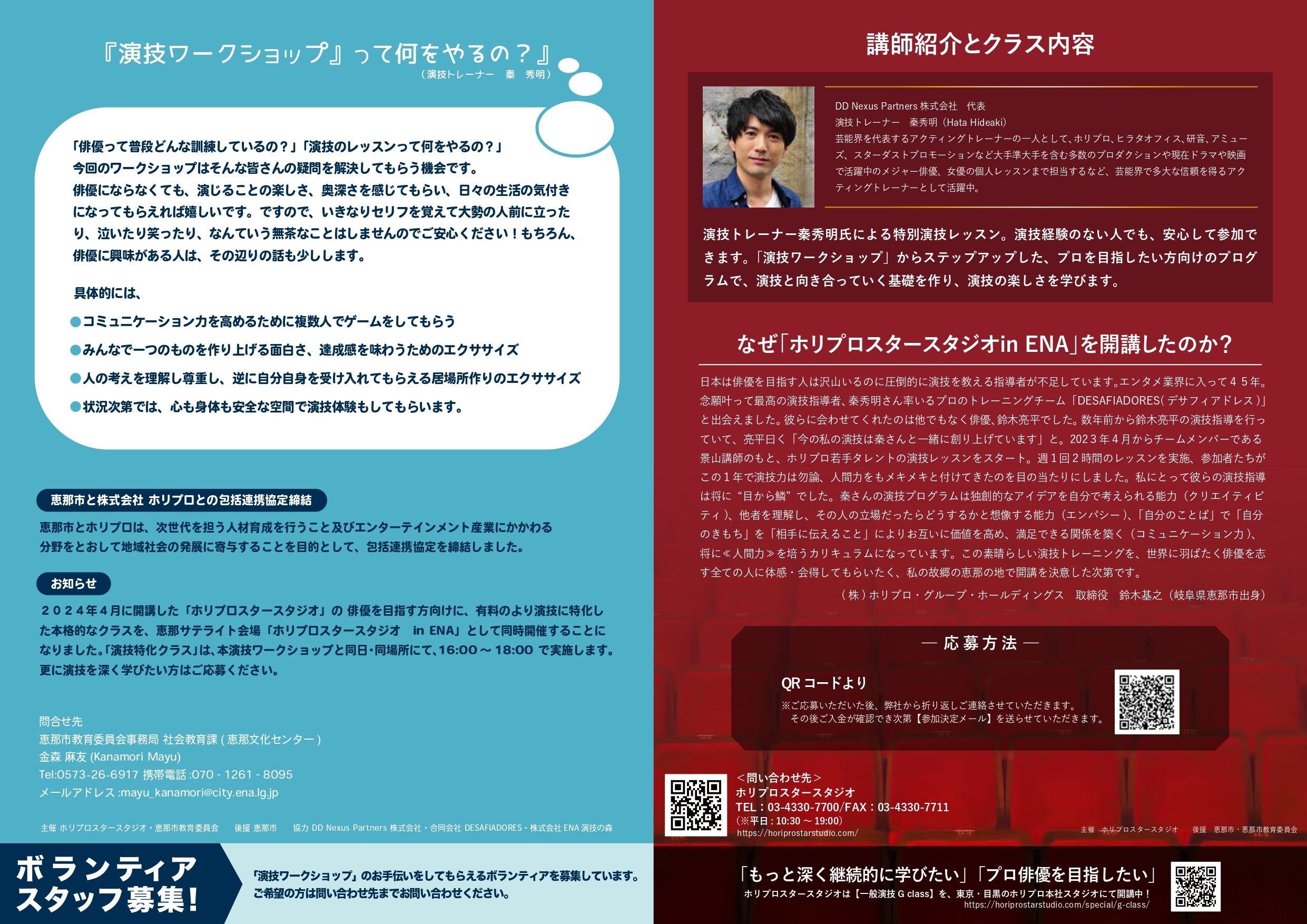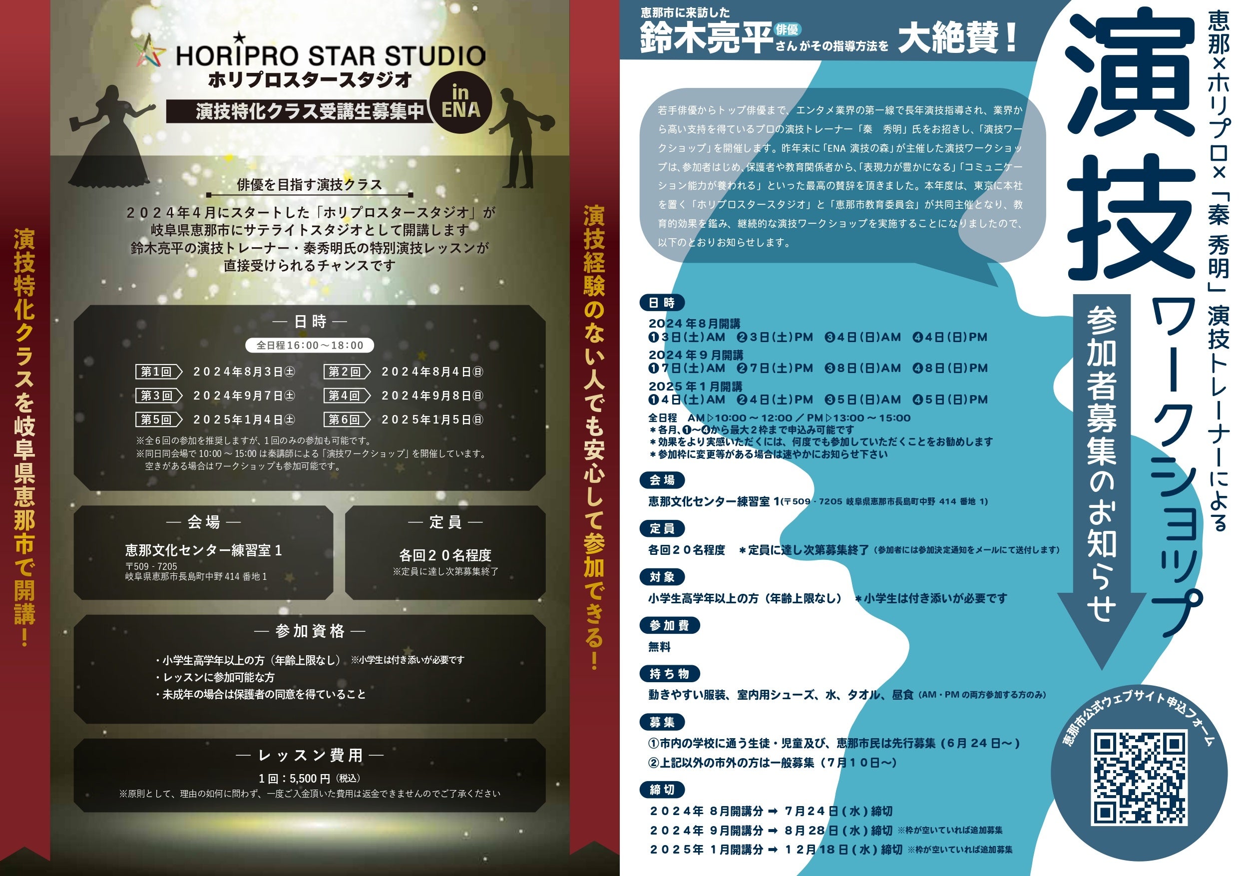 ・ワークショップと併せ、俳優を目指す方向けの演技特化クラス「ホリプロスタースタジオ inENA 恵那サテライト」開講(ワークショップと同日同会場)