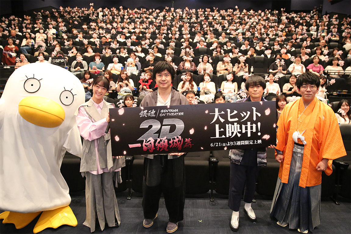 その他にもフォトセッションコーナー等も挟み大盛りあがりのなか、舞台挨拶の残り時間は惜しくもわずかに。4名から、最後のメッセージが贈られ、「銀魂オンシアター2D 一国傾城篇」上映記念舞台挨拶は大盛況のまま幕を閉じた。