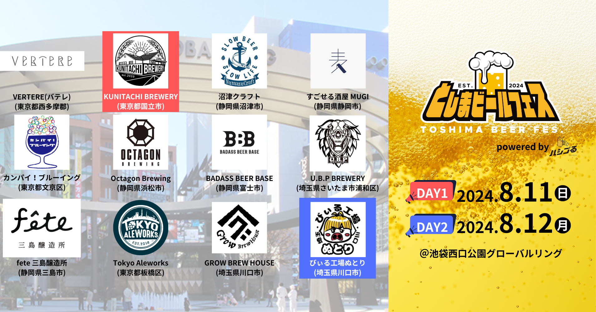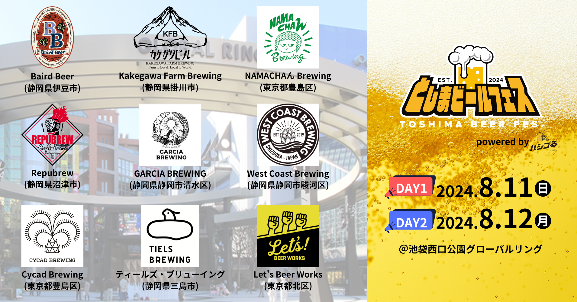 ティールズ・ブリューイング合同会社/Kakegawa Farm Brewing/Let’s Beer Works/VERTERE合同会社/Baird Beer/NAMACHAん Brewing/West Coast Brewing/Repubrew/GARCIA BREWING/Cycad Brewing/KUNITACHI BREWERY/柿田川ブリューイング株式会社 沼津クラフト/ZOO株式会社MUGI/カンパイ!ブルーイング/Octagon Brewing/BADASS BEER BASE/U.B.P BREWERY/fete(フェット) 三島醸造所/Tokyo Aleworks/GROW BREW HOUSE/合同会社ぬとり