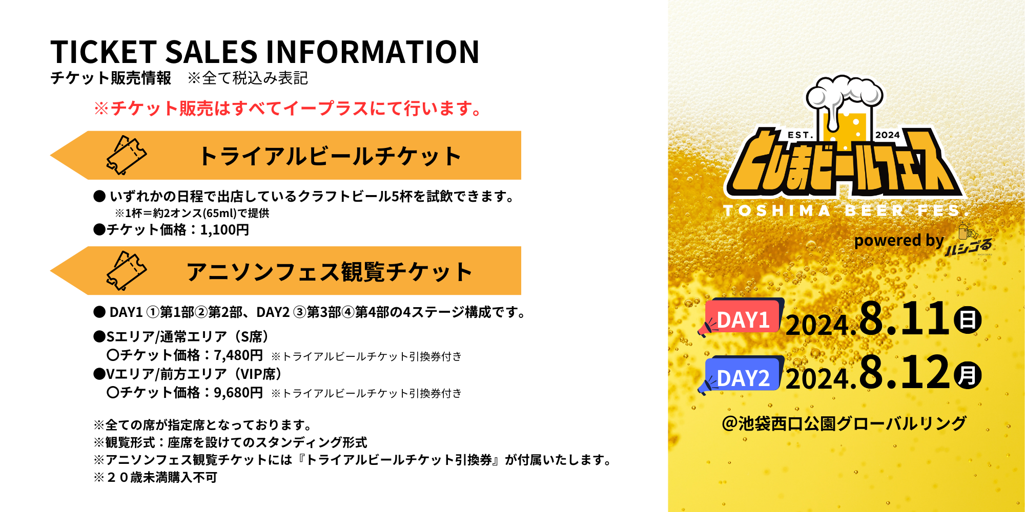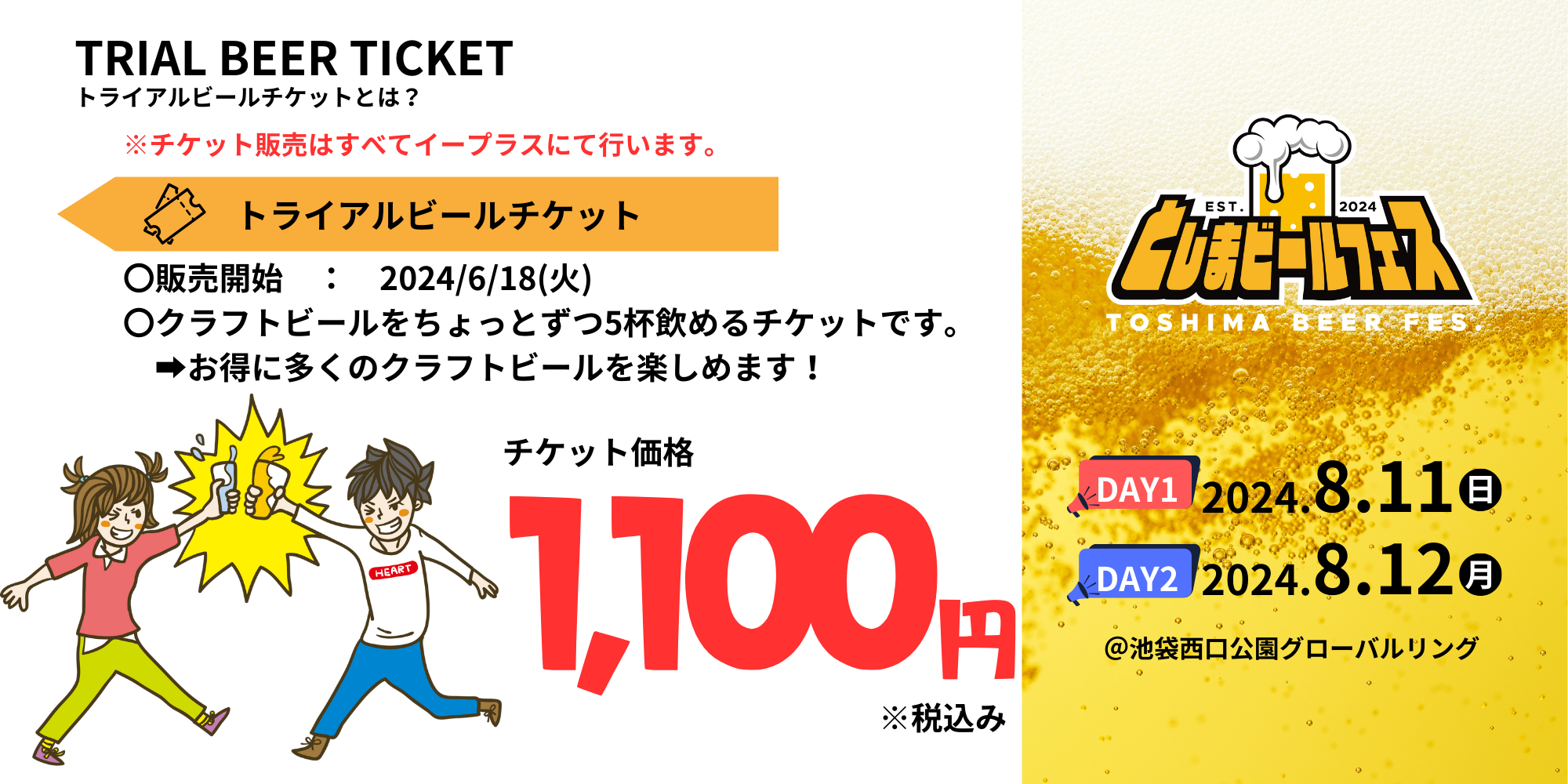 ・トライアルビールチケットは、お酒を提供するチケットとなっており、20歳未満の方は購入できませんのでご注意ください。