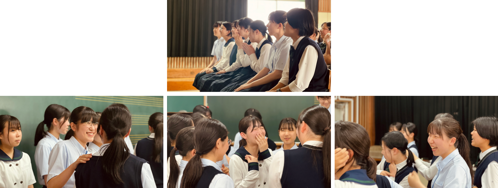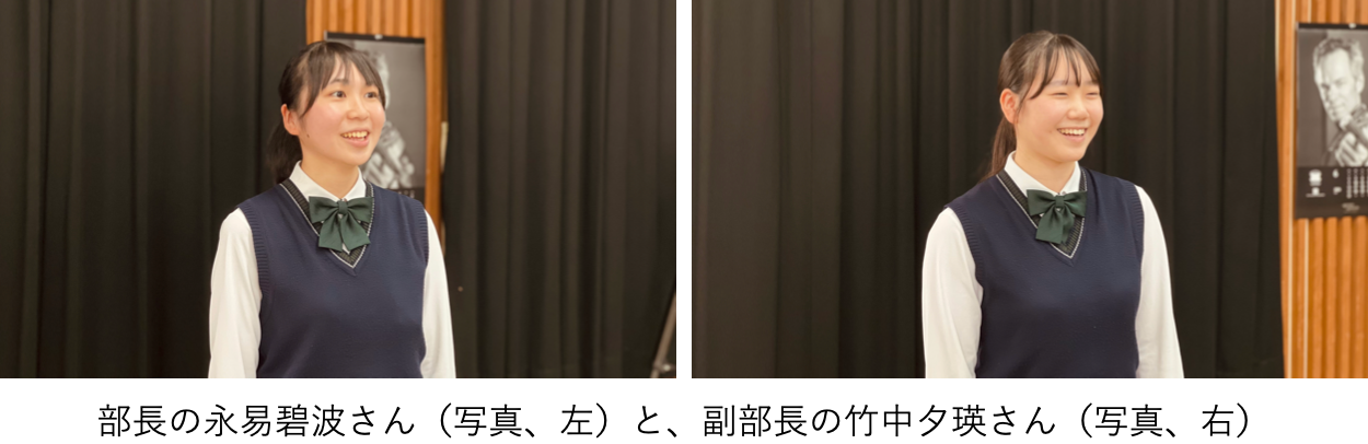 チャイムとともに授業が終わり、音楽室に集まった合唱部生徒たち。先生より「今日は皆さんに重大発表があります!」と告げられ、「T(とても)、G(頑張っている)、C(コーラスグループ)」と、突然の先生渾身のボケを交えた発表にあっけらかんとするも、はっきりと黒板に書かれた「TGC」の文字にざわつき始める音楽室。「というのは冗談で、なんと、西条高等学校 合唱部のTGC松山出演が決定しました!そして、今回合唱部の皆とコラボレーションしてくださるのはこの方です!」と発表され、モニターにAIからのサプライズメッセージ動画が映し出されると、音楽室には割れんばかりの大歓声が!大興奮の生徒たちに向けて、「これまでの先輩たちの頑張りが評価されて、今回のチャンスがめぐってきました。先輩たちに感謝しながら、これから頑張っていきましょうね!おめでとう!」と先生より激励の言葉が送られ、部長の永易碧波さん(ながやす・みなみ)は「すごくびっくりしています!心臓がバクバクしているのですが、この機会を繋いでくださったこれまでの先輩方への感謝の気持ちを忘れずに、TGCにご出演されるキラキラした方々にも負けないように、AIさんと一緒に素敵なステージができたらと思います。」と、副部長の竹中夕瑛さん(たけなか・ゆえ)は「TGC松山に出演できることだけでもすごいことなのに、AIさんとご一緒できるなんて本当に嬉しいです!先生や先輩方のおかげでもあると思うので、噛みしめながら、ステージを盛り上げていけたらなと思います!頑張りましょう!」と意気込みを語りました。