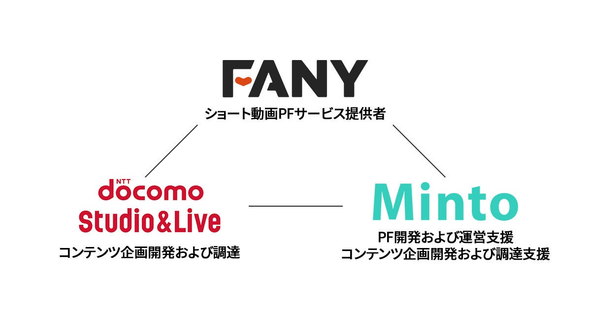 株式会社NTTドコモ・スタジオ&ライブ(本社:東京都千代田区、代表取締役:吉澤啓介、以下当社)は、株式会社FANY(以下、FANY)と株式会社Minto(以下Minto)と共同で、縦型ショートドラマプラットフォームを2024年冬にリリースすることをお知らせいたします。