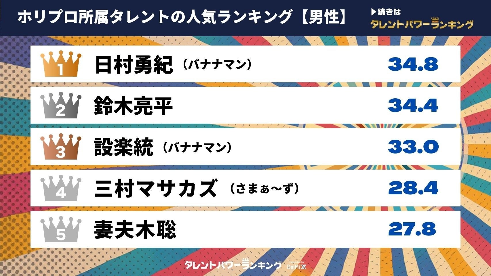 『タレントパワーランキング』では、タレントパワーランキングに登録されているホリプロに所属するタレントのスコアを調査。
