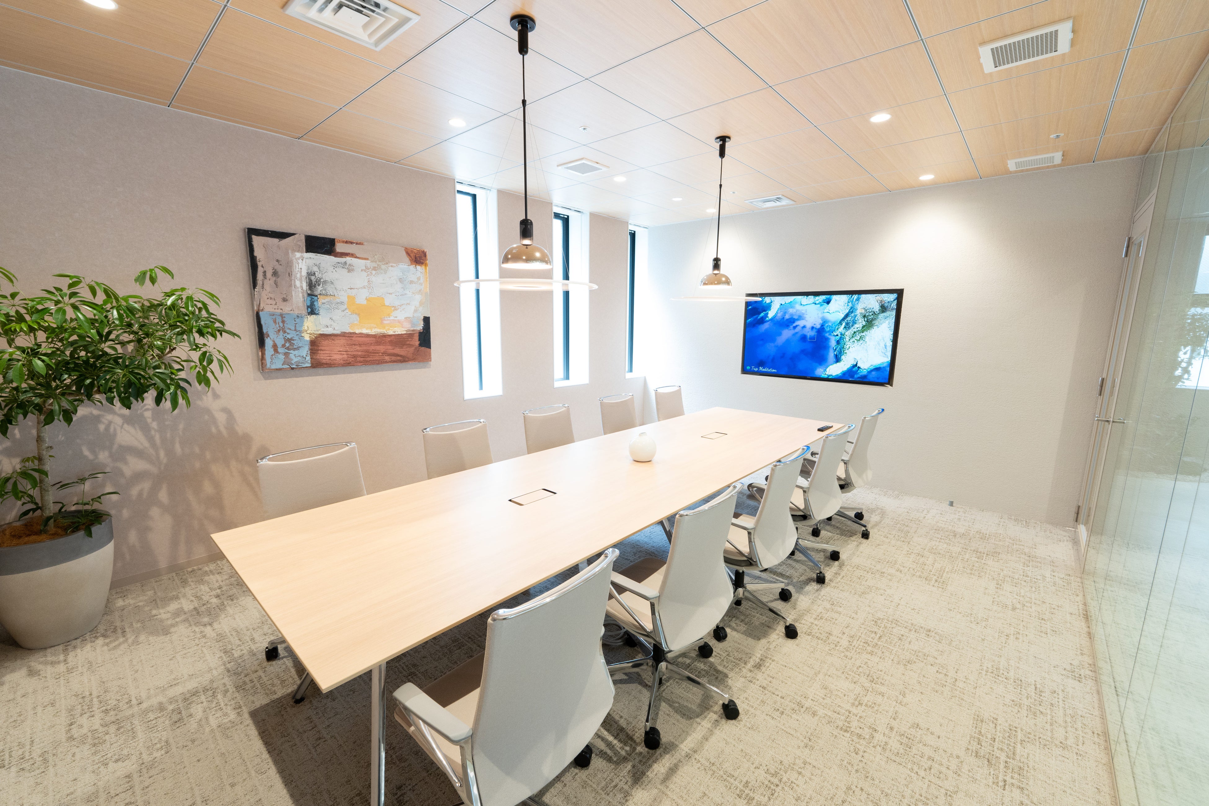 そこで、執務空間をリラクゼーションエリアで挟み、1歩席を立てば緊張感から解放されるような導線を確保しました。