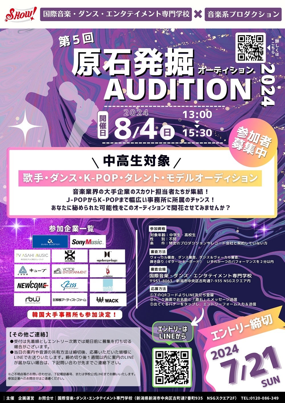 【SHOW!国際音楽・ダンス・エンタテイメント専門学校主催 原石発掘オーディション】