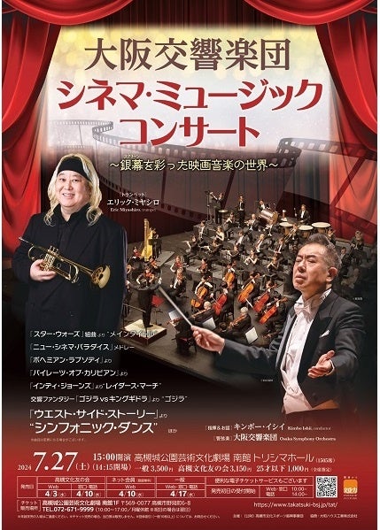 指揮を務めるのは大阪交響楽団首席客演指揮者のほか、ベルリン・コミッシェ・オーパー首席カペルマイスターなどを歴任したキンボー・イシイ。ゲストに世界で活躍するトランペット奏者のエリック・ミヤシロを招き、フルオーケストラによる生演奏で、「スター・ウォーズ」、「ニュー・シネマ・パラダイス」、「ボヘミアン・ラプソディ」、「パイレーツ・オブ・カリビアン」などの有名映画作品で流れる名曲の数々をお届けします。