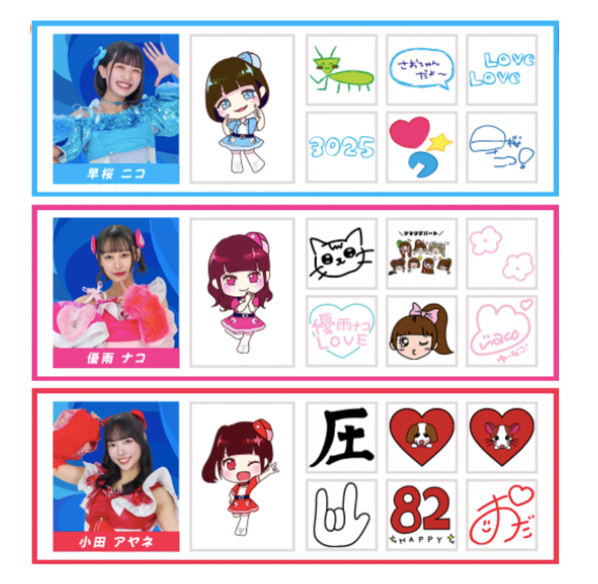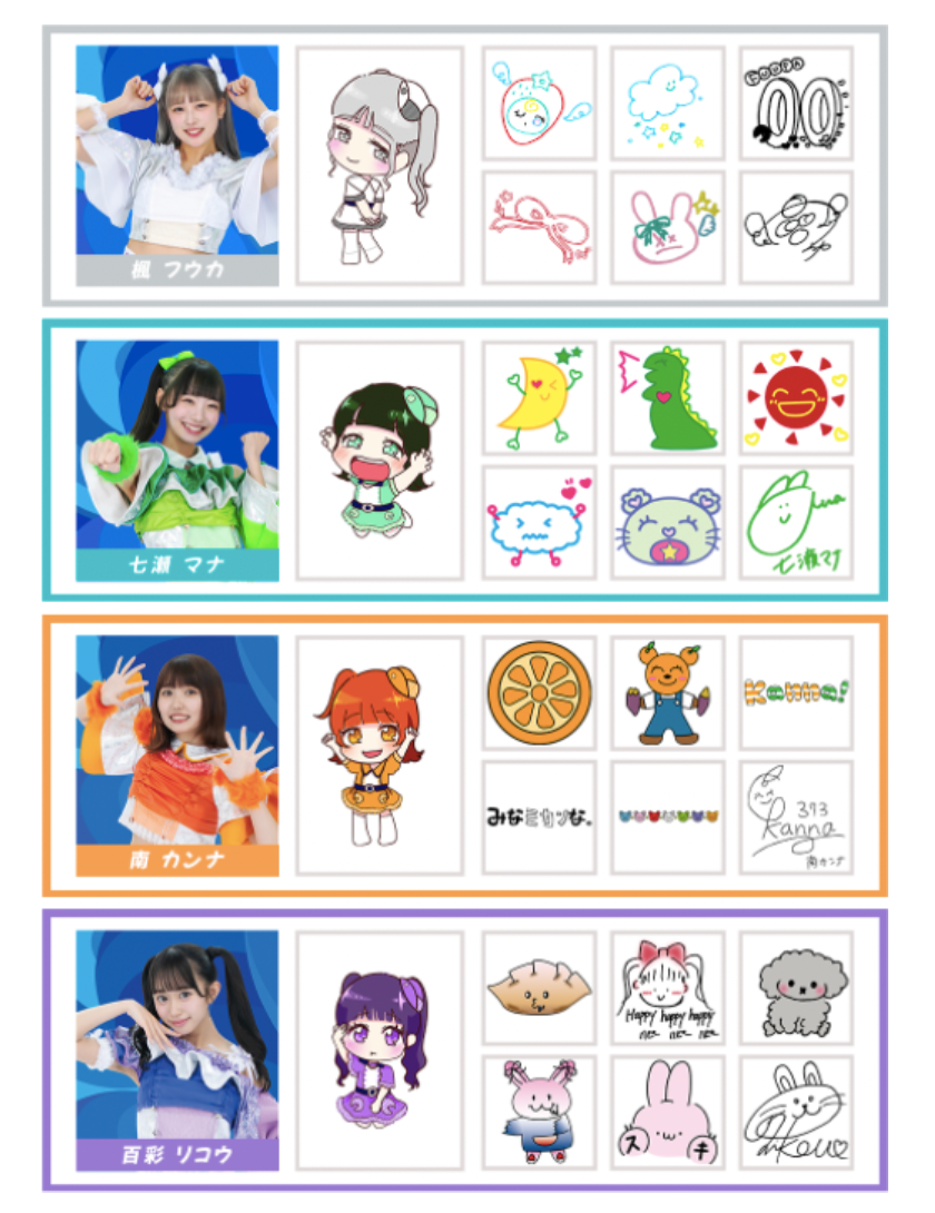 コラボ限定メンバーの手描きデザインと小田アヤネさん描き下ろしSDキャラを