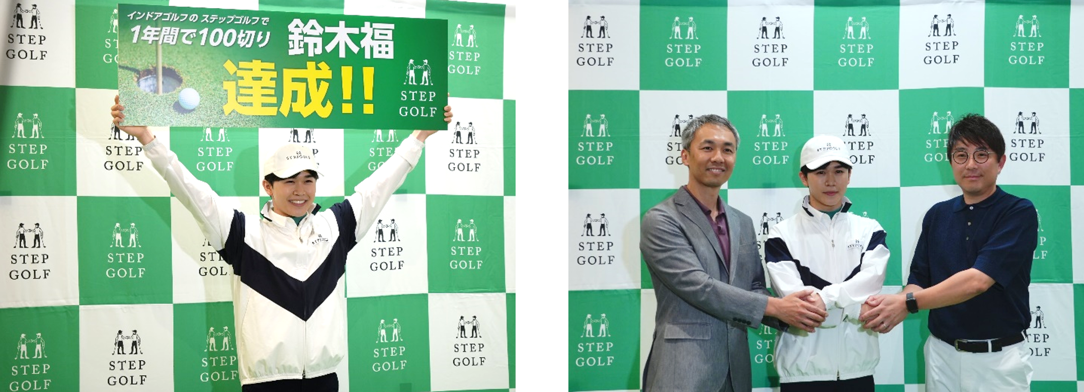 鈴木福くんは2023年4月1日より本格的にゴルフを始め、ステップゴルフのエグゼクティブコーチである吉田コーチに1から指導を受け、「1年以内にスコア100切り」を目指しました。イベントでは100切りチャレンジを行った最終18Hの映像で達成の瞬間を発表。達成の“ご褒美”としてステップゴルフの代表、榎本より「ゴルフ発祥地と言われる、セントアンドリュースでのプレーか、ハワイでのプレーのどちらか好きなコース」と海外のコースでのプレーをプレゼントしました。ご褒美をもらった福くんは「ハワイは両親が新婚旅行で行った思い出の地なのでハワイもいいし、セントアンドリュースも行きたいから迷うな」と。